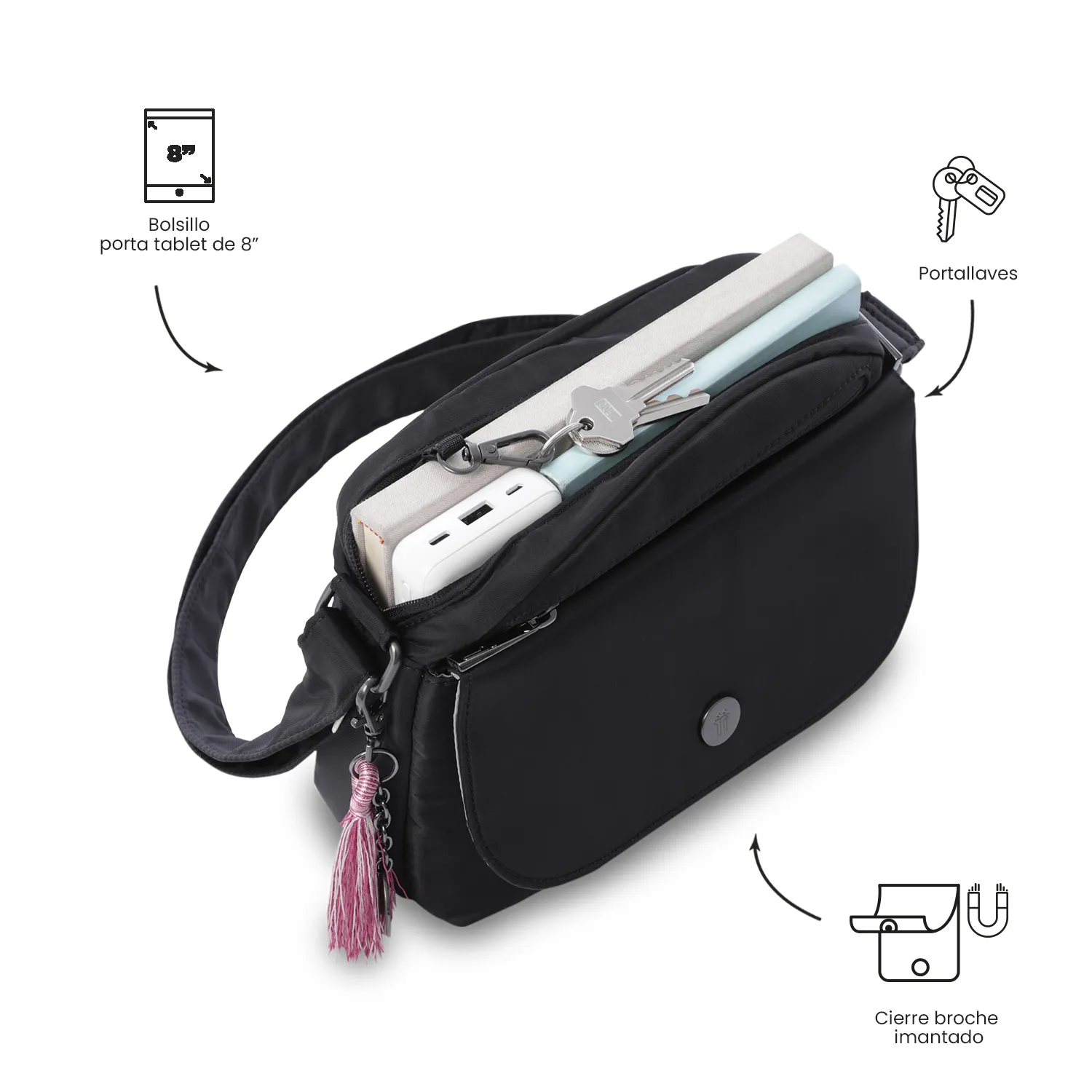 BOLSO TOTTO CORNEANA PORTA TABLET 8″ – NEGRO – TALLA S